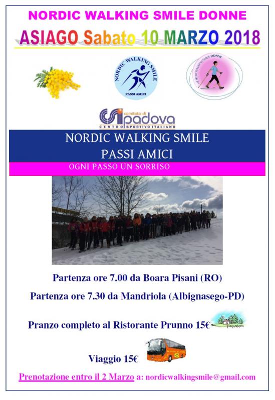 CAMMINATA APERTA A TUTTE LE DONNE anche non iscritte al Nordic Walking Smile Passi Amici
