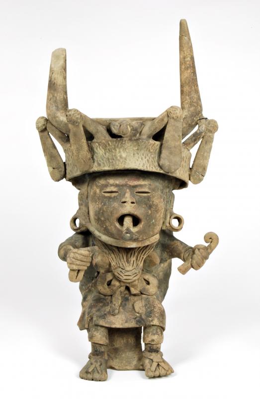 In mostra è possibile ammirare reperti straordinari delle culture mesoamericane e peruviane come appunto “La figura della divinità” (300-900 d.C, nella foto in allegato) di area mesoamericana della cultura di Veracruz.