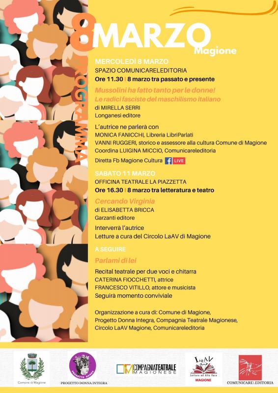 Organizzazione a cura di: Comune di Magione, Progetto Donna Integra, Compagnia Teatrale Magionese, Circolo LaAV Magione, Comunicareleditoria.