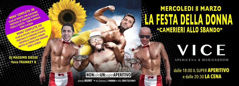 Apericena e cena completa per la festa della donna, serata Vice all'Agiro' (ex Fantagiaco) in via Gramsci, 5 a Parma, camerieri allo sbando.