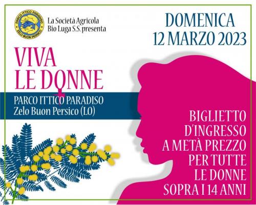 VIVA LE DONNEIn occasione della Giornata Internazionale della Donna (Festa della donna) il Parco Ittico Paradiso offre a tutte le donne in visita al parco il biglietto a metà prezzo.