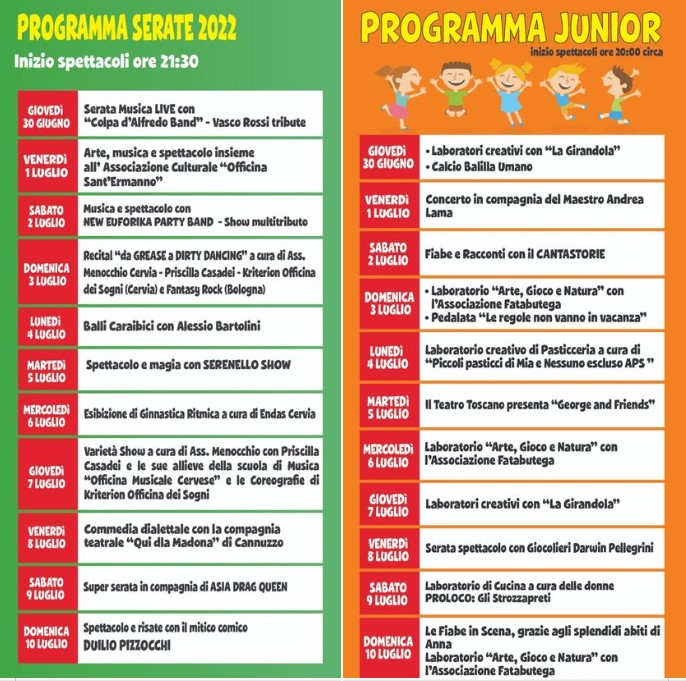 Dal 30 Giugno a 10 Luglio 2022, se cercate un posto dove poter mangiare bene e divertirvi con tanti spettacoli e giochi per grandi e piccini, la "Sagra dello Strozzaprete" vi aspetta per degustare la tipica cucina locale (Strozzapreti delle Azdore, gustosamente conditi con ricette di carne e pesce, Fiorentina o Grigliate miste di carne, Fritto di pesce e tanto altro!) Il tutto unito a del buon vino e allo spirito di divertimento del Paese! Dalle 19 in poi si apriranno le danze con momenti di svago e divertimento per tutta la famiglia.