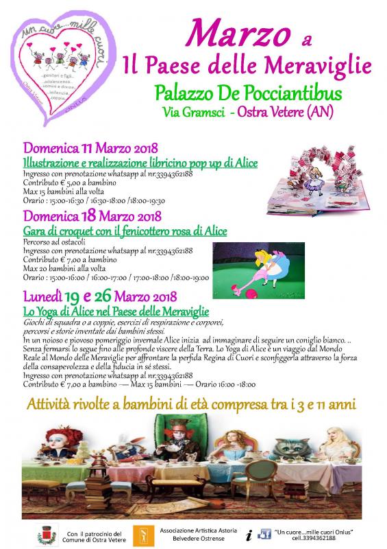All’interno di uno dei palazzi più antichi di Ostra Vetere è stato creato , con particolari scenografie, “il Paese delle Meraviglie , laboratorio didattico per bambini che per il mese di marzo propone le seguenti attività: