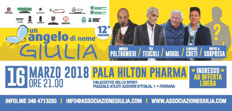 eccoci alla 12° edizione del nostro recital “Un angelo di nome Giulia” un appuntamento imperdibile, a sostegno della nostra Associazione, al Pala Hilton Pharma, Ferrara venerdì 16 marzo, alle ore 21,00. Con noi, gli amici di sempre Andrea Poltronieri e Ludovico Creti un incontenibile Teo Teocoli, il grande maestro Mogol e…un ospite a sorpresa!!! Non potevamo mica dirvi tutto, eh? Sarà una ‘chicca‘ che abbiamo preparato per voi carissimi amici, e che renderà indimenticabile la nostra serata.