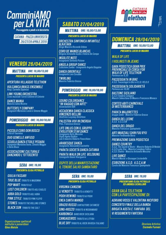 Un traguardo ambizioso a cui mira da 29 anni, la Fondazione Telethon che come ogni anno scende in campo, a fianco del coordinamento di Catania per il grande appuntamento con la "Walk of life- CammiAMO per la Vita”, in programma in piazza Università a Catania, dal 26 al 28 aprile.
