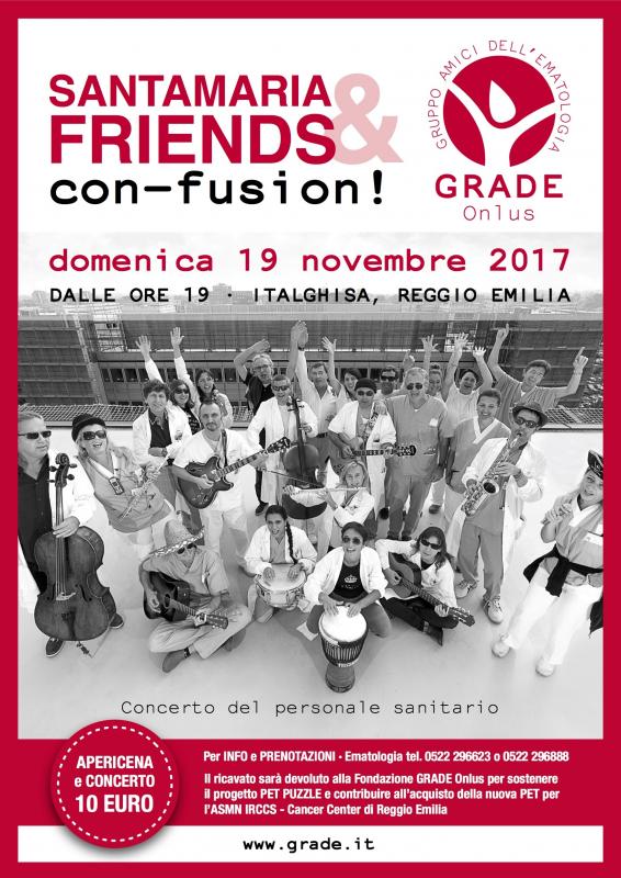 REGGIO EMILIA - Domenica, 19 novembre, alla Fonderia Italghisa di via dei Gonzaga torna dalle ore 19 l’atteso appuntamento del GRADE “Santamaria&Friends”, che quest’anno prende il nome di “Con-Fusion!”. Si tratta della nuova edizione del concerto del personale sanitario del Santa Maria Nuova, proposto per la prima volta tre anni fa e ormai diventato un “classico”, per le sue modalità amichevoli e davvero coinvolgenti. Per una sera, il personale dell’Arcispedale Santa Maria Nuova – IRCCS Cancer Center e dell’AUSL di Reggio, appende il camice per salire sul palco per suonare e cantare insieme a favore di Fondazione GRADE Onlus. Fin dalla prima edizione, l’evento ha dimostrato quanti talenti musicali si nascondano tra medici, infermieri e personale dell’ospedale reggiano, provenienti da diversi Reparti, che non hanno avuto paura di mettersi in gioco e insieme imbracciare gli strumenti, afferrare i microfoni e allestire una serata di musica e intrattenimento per sostenere la raccolta fondi del GRADE.