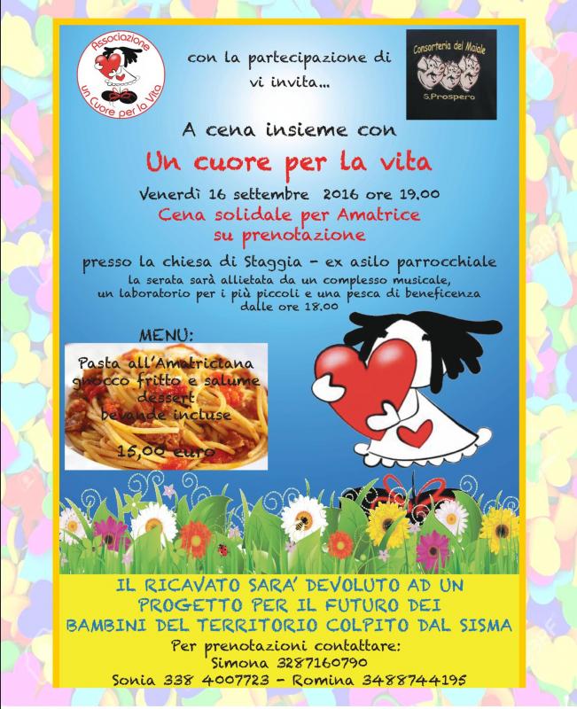 L'intero ricavato sarà devoluto alle popolazioni del Centro Italia colpite dal sisma.