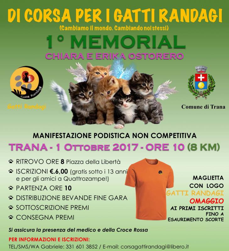 1 ottobre a Trana: ”Di corsa per i gatti randagi” - I Memorial Chiara ed Emilia Ostorero