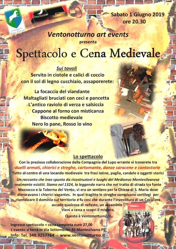 Siamo nel 1324 la leggenda narra che nel tratto di strada tra fonte Mazzocco e la Taberna del Vento, vi era un sentiero per la Chiesa di S. Maria dove dimoravano i chierici vagantes. In quel tragitto le streghe compivano sortilegi per rivendicare il dominio sul territorio e fu così che durante l’investitura di un Cavaliere accade qualcosa di nefasto, un assassinio! Chi è stato? Vieni a cena e scopri il mistero.