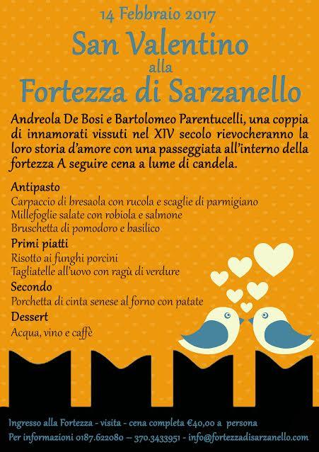 Martedì 14 febbraio 2017 appuntamento romantico a Sarzana (SP) Fortezza di Sarzanello.