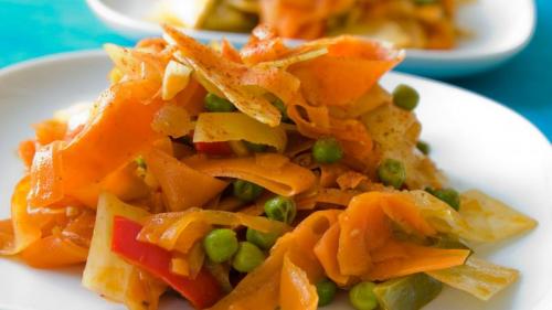 Bobotie con blatjang (pasticcio di carne con riso giallo e salsa agrodolce piccante di albicocca)