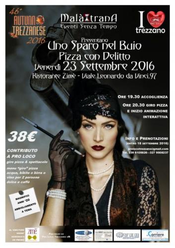 Venerdì 23 settembre 2016 ore 19.30, presso ristorante Zimè (v.le Leonardo da Vinci, 97 a Trezzano sN -MI), Pizza Con Delitto.