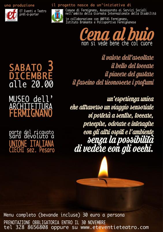 Un’esperienza unica che attraverso un viaggio sensoriale vi porterà a sentire, toccare, percepire, odorare e interagire con gli altri ospiti e l’ambiente senza la possibilità di vedere con gli occhi.parte del ricavato sarà devoluta a