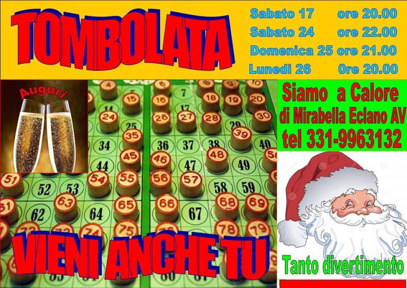 Serata dedicata alla classica TOMBOLATA fra amici come hai vecchi tempi di una volta, inoltre tanta buona musica e balli di vario genere come LISCIO - LATINO - AMERICANO - Caraibico - e Merenghe.
