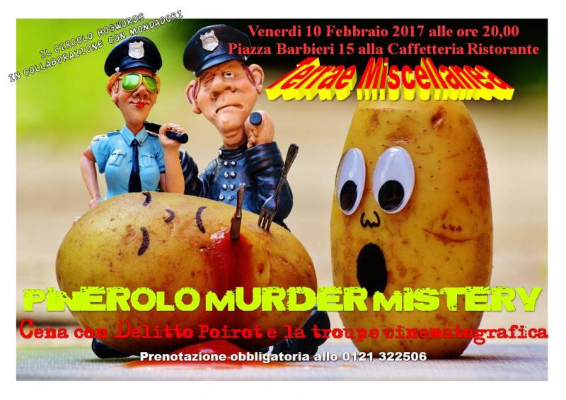 Pinerolo si tinge di giallo ovvero come un Ispettore belga erroneamente creduto morto gode di ottima salute e indaga su quella (pessima) degli altri…Tra i tavoli imbanditi di libagioni gustose ed intriganti si aggireranno stravaganti personaggi e si potrà cercare di rivaleggiare con un Ispettore del calibro di Poirot. Una troupe cinematografica formata dal Produttore Danil Muvi, dall’attrice Miss Scarlet, dallo sceneggiatore Evaristo Manodoro, dal fonico Junaid Saramago e dalla receptionist Giorgia Borgia, divide col celeberrimo investigatore e pochi altri avventori le stanze di un noto e prestigioso albergo nella città della Cavalleria.. Pur dovendo redigere un rapporto per la Polizia locale che aveva chiesto il suo prezioso aiuto, l’intento dello scorbutico belga è quello di riposarsi e rilassarsi. Invece, il nostro stimato Ispettore si troverà presto coinvolto in un caso di omicidio allorquando il suono sordo di colpi di pistola sparati nella buia e fredda notte segneranno l’arrivo della Grande Falciatrice. Quattro sono gli individui sospettati i quali tenteranno in ogni modo di depistare le indagini e di scagionarsi cercando anche di accusare altri di quell’insano gesto. Uno solo di loro, però, risulterà essere il colpevole. Siatene certi. A tutti i temerari commensali che parteciperanno alla serata toccherà il compito di affiancare lo spossato Ispettore nelle indagini del caso e sfidare tutti gli altri. La posta in palio è verificare chi possiede più… come dire… little grey cells, le "cellule grigie" tanto decantate. I migliori detective scelti tra i commensali riceveranno quale ambito premio un diploma cum laude di inquirente investigativo della serata. Una volta terminato l'evento, ogni commensale riceverà un gradevole libro nuovo edito quale simpatico cadeau della serata.