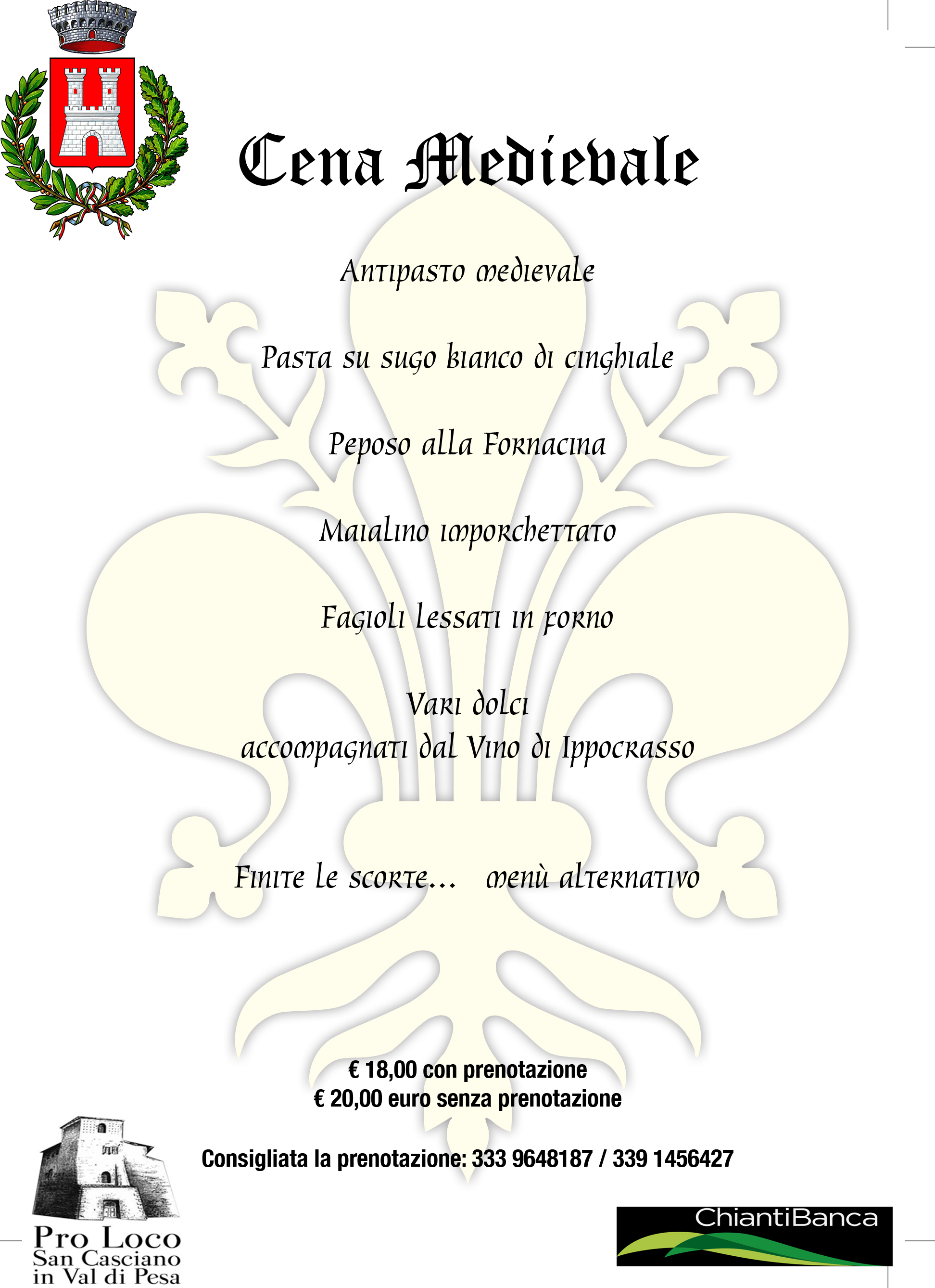 Cena medievale sotto le stelle, menù tipico medievale con piatti e bevande tipiche
