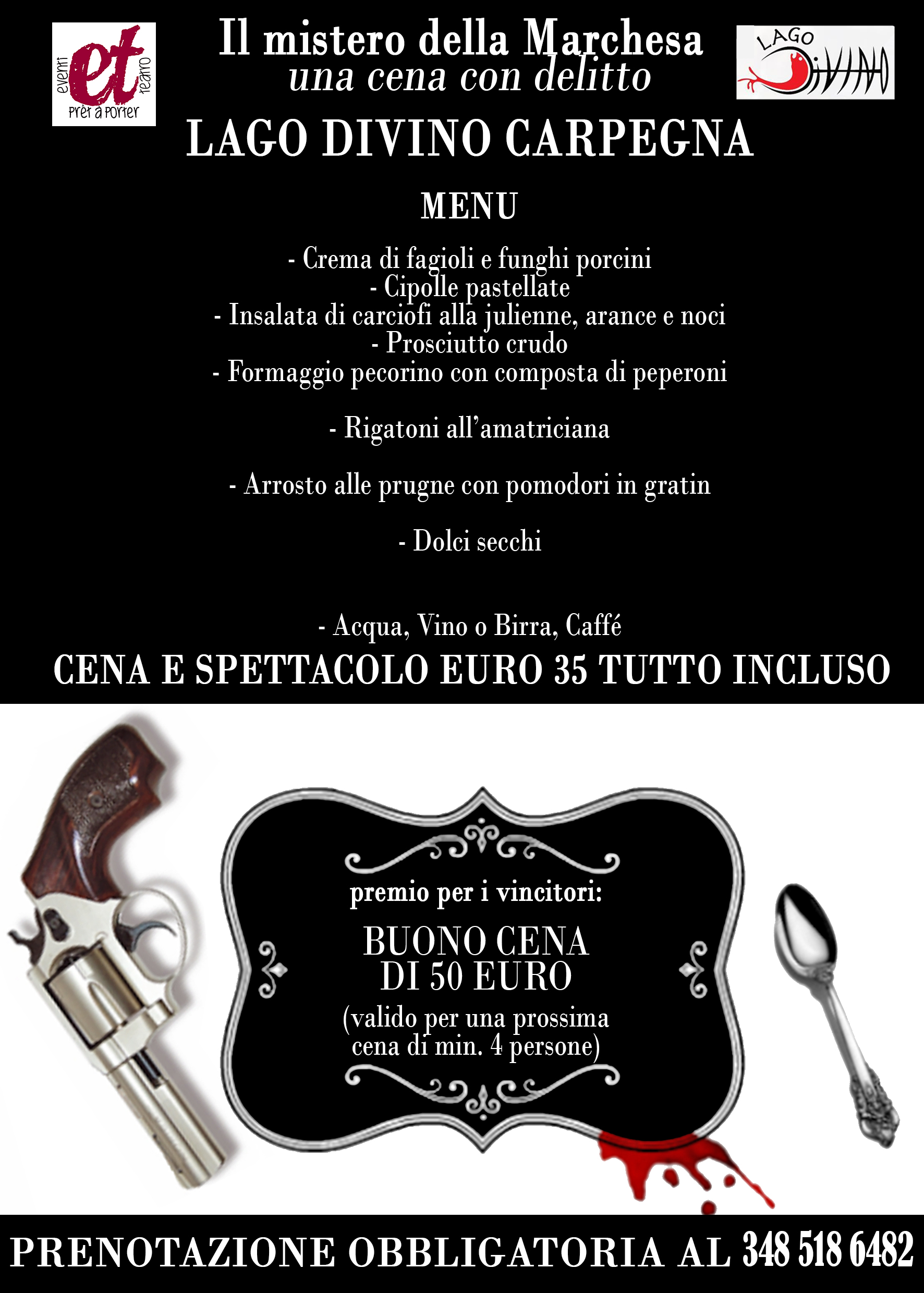 e... un'ottima cena ad accompagnare il TUTTO per una serata piena di MISTERO, SPETTACOLO e DIVERTIMENTO!