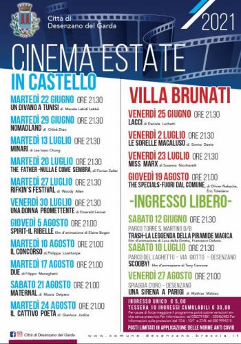 Dal 30 giugno al 27 agosto 2021 tornano le proiezioni all’aperto “Cinema in castello” realizzato dal Comune di Desenzano del Garda.