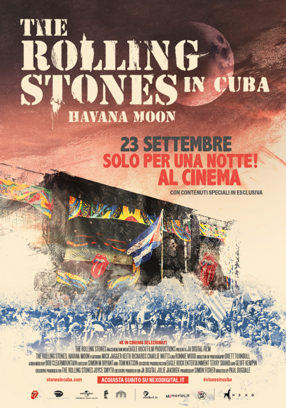 “The Rolling Stones. Havana Moon in Cuba” arriva nei cinema italiani solo venerdì 23 settembre distribuito da Nexo Digital in collaborazione con i media partner Radio DEEJAY, MYmovies.it, Rockol.it.