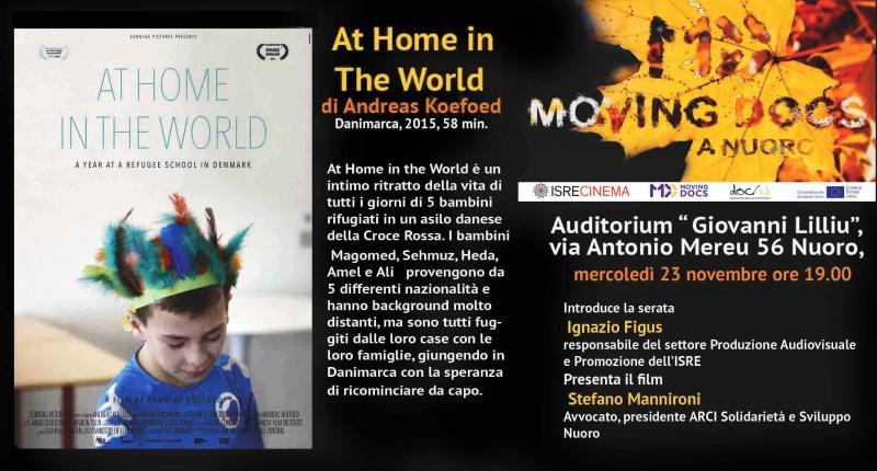 Mercoledì 23 novembre 2016 la rassegna cinematografica Moving Docs a Nuoro organizzata dall’ISRE in collaborazione con Moving Docs, Doc/it Associazione Documentaristi italiani e Creative Europe Media, proporrà il film di Andreas Koefoed, At Home in the World, un poetico documentario di osservazione che descrive la quotidianità di Magomed, un rifugiato ceceno di dieci anni, e dei suoi amici in una scuola della cittadina danese di Lynge.
