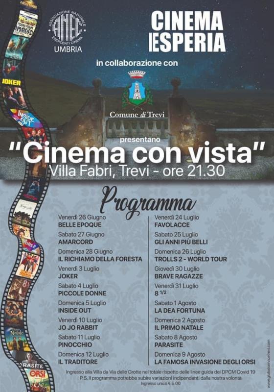 Tutti i fine settimana, dal 26 Giugno al 09 Agosto alle ore 21:30, nello spelndido scenario di Villa Fabri, in collaborazione con ANEC Umbria e CINEMA ESPERIA di Bastia: "Cinema con Vista".
