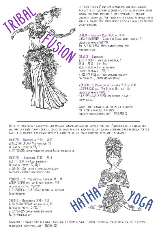 La Tribal Fusion e’ una danza moderna con radici antiche.Riunisce in se’ elementi di danza del ventre, flamenco, danza indiana con danze moderne e contemporanee. Le musiche utilizzate vanno dall’elettronica alla balkan, passando per il jazz e il reggae. Una danza libera rivolta a qualsiasi persona voglia danzare.