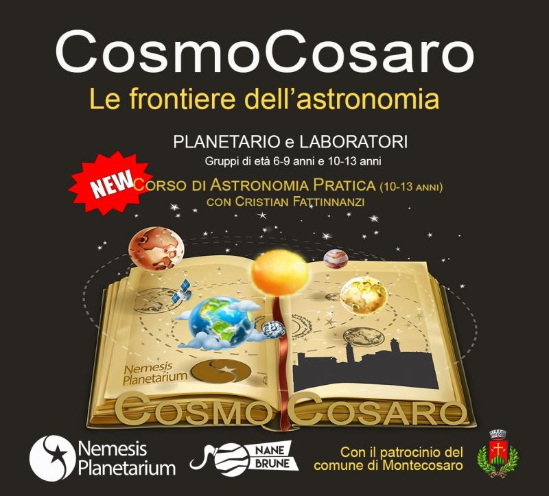 L’altra novità di questa edizione vede la divisione dei partecipanti in due gruppi, per fascia di età, 10-13 appunto e 6-9 anni, con l’obiettivo di proporre contenuti ottimizzati nel linguaggio e adattati alle differenze di apprendimento. “Quest’anno” spiega la d.ssa Molisella Lattanzi, presidente dell’Associazione Nemesis Planetarium, promotrice del progetto planetario “CosmoCosaro proporrà due percorsi diversi a seconda dell’età. Il primo per i più piccoli riproporrà al formula ben riuscita dello scorso anno con laboratorio didattico e planetario a seguire, un percorso della durata di 2 ore. Il secondo, per i più grandi durerà invece tre ore in cui i ragazzi e ragazze saranno dapprima impegnati nel corso di astronomia osservativa, poi coinvolti nei laboratori ed infine ospitati nel planetario. Diverse durate e diverse modalità valutate appunto sulle potenzialità di attenzione e concentrazione propria di ogni età.” L’appuntamento è di domenica pomeriggio con inizio per entrambi i gruppi alle ore 16 e presso i locali del palazzo comunale di Montecosaro in via Gatti, 3.