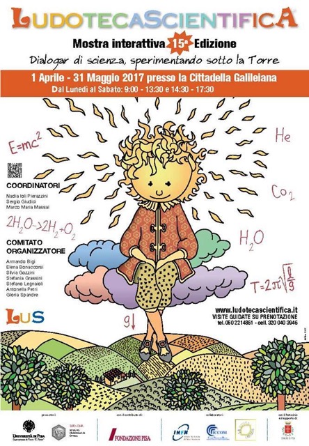 "Ludoteca Scientifica - Dialogar di scienza sperimentando sotto la torre", 15 esima edizione, che ha avrà inizio il giorno 1 Aprile e terminerà in data 31 Maggio 2017, presso la ritrovata e rinnovata sede storica, Cittadella Galileiana, con ingresso da via Bonanno Pisano 2/B, Pisa.