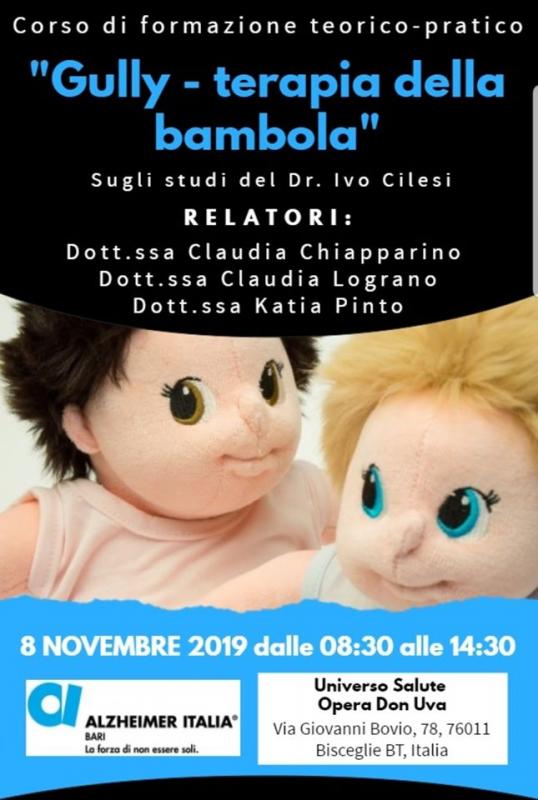 Presso la sede Universo Salute Opera Don Uva di Bisceglie, Venerdì 08 Novembre, dalle 08.30 si tiene il corso di formazione teorico-pratico di "Gully - Terapia della bambola".