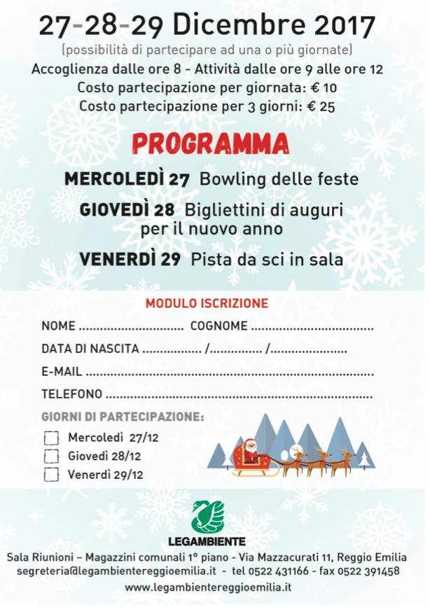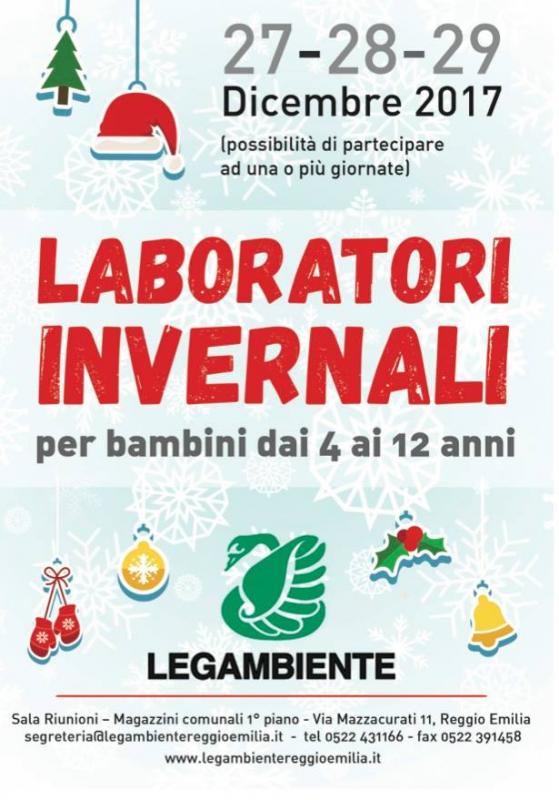 In occasione delle festività natalizie Legambiente organizza i laboratori natalizi per bambini e ragazzi dai 4 ai 12 anni, nella sede di Via Mazzacurati a Reggio Emilia.