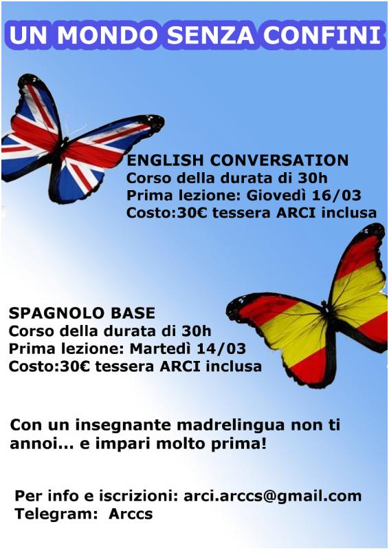 Corso di conversazione di inglese, a partire dal 16/03 (30h di corso, al costo di 30€ tessera ARCI inclusa)