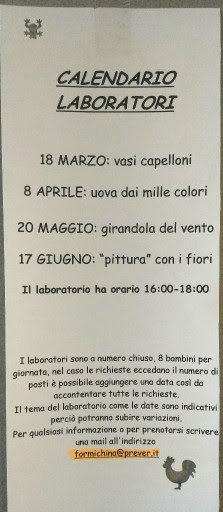 è gradita la prenotazione all'indirizzo: formichina@prever.it.