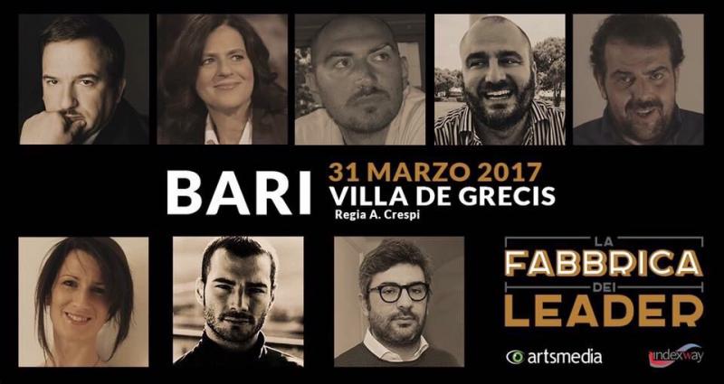 Il “super master” ideato dall'esperto di comunicazione Luigi Crespi, sbarca in Puglia. Dopo il grande successo di Roma, il corso di formazione La Fabbrica dei Leader riprende con una prima tappa fissata per venerdì 31 marzo a Bari, presso Villa De Grecis, in via Murgia 63, a cui seguirà ad aprile la tappa a Cagliari. Per poi volare spedito verso il tempio della notte, il Cocoricò di Riccione, location dell'evento dell'anno in programma per il 13 e 14 maggio.