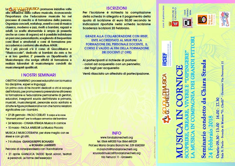 Prossimo seminario organizzato dalla Scuola di Musica Chelli con il Patrocinio del Comune di Grosseto, dell’ I.S.S.M.” R. Franci” di Siena, dell’Associazione “Nati per la musica” (programma dell’ A.C.P. Associazione Culturale Pediatri) e di “Musica in culla”