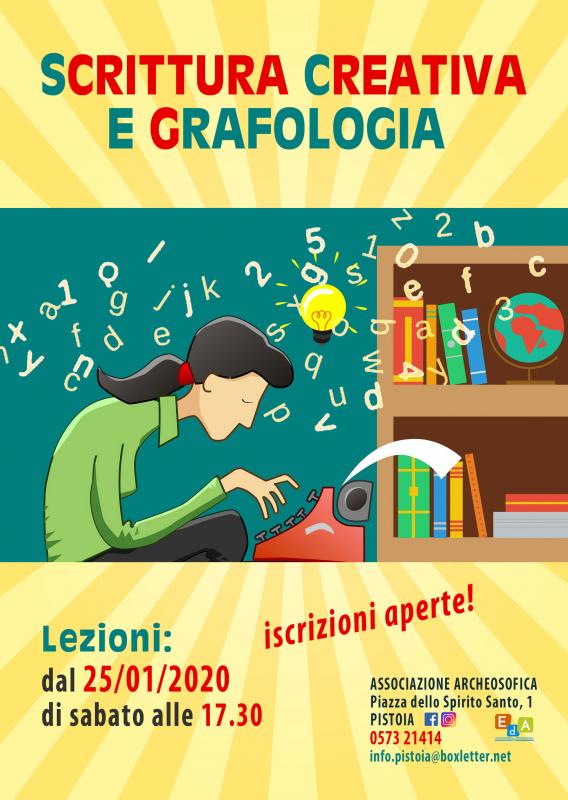 Sabato 25 gennaio h. 17.30, presso l’Associazione Archeosofica di Pistoia, Piazza dello Spirito Santo 1, presenteremo il corso di “Scrittura creativa e grafologia”, che si terrà ogni Sabato dalle 17.30 alle 19,00
