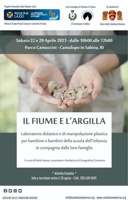 ”Due imperdibili incontri il 22 e il 29 aprile 2023, dalle ore 10 alle ore 12, al Parco Camuccini di Comune di Cantalupo in Sabina dedicati alla manipolazione dell'argilla. Gli incontri, rivolti a bambini e bambine della scuola dell’infanzia, saranno a cura di Karla Sotres ceramista e fondatrice di Geografica Ceramica.