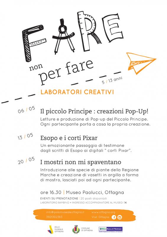 Gli incontri saranno svolti nel Museo Provinciale di Scienze Naturali "Luigi Paolucci" di Offagna, dove i partecipanti potranno sperimentarele proprie capacità in un contesto protetto nel quale i più piccoli potranno essere i protagonisti. Lapossibilità di interagire attraverso l'uso dei cinque sensi con oggetti e contesti reali aiuta il bambino aimparare e stimolare la propria curiosità. I laboratori sono pensati e creati per un target dai 5 ai 13 anni e mirano al lavoro su diversi aspetti della persona.