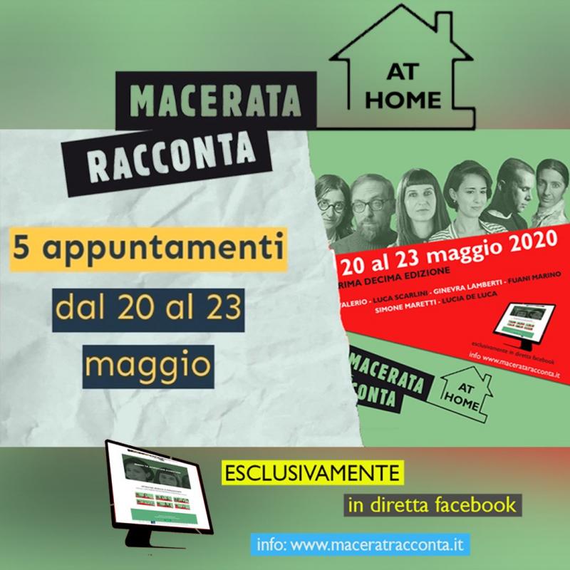 A Macerata si svolge nei giorni dal 20 al 23 Maggio 2020 la 10a edizione della festa del libro "Macerata Racconta" esclusivamente in diretta Facebook.
