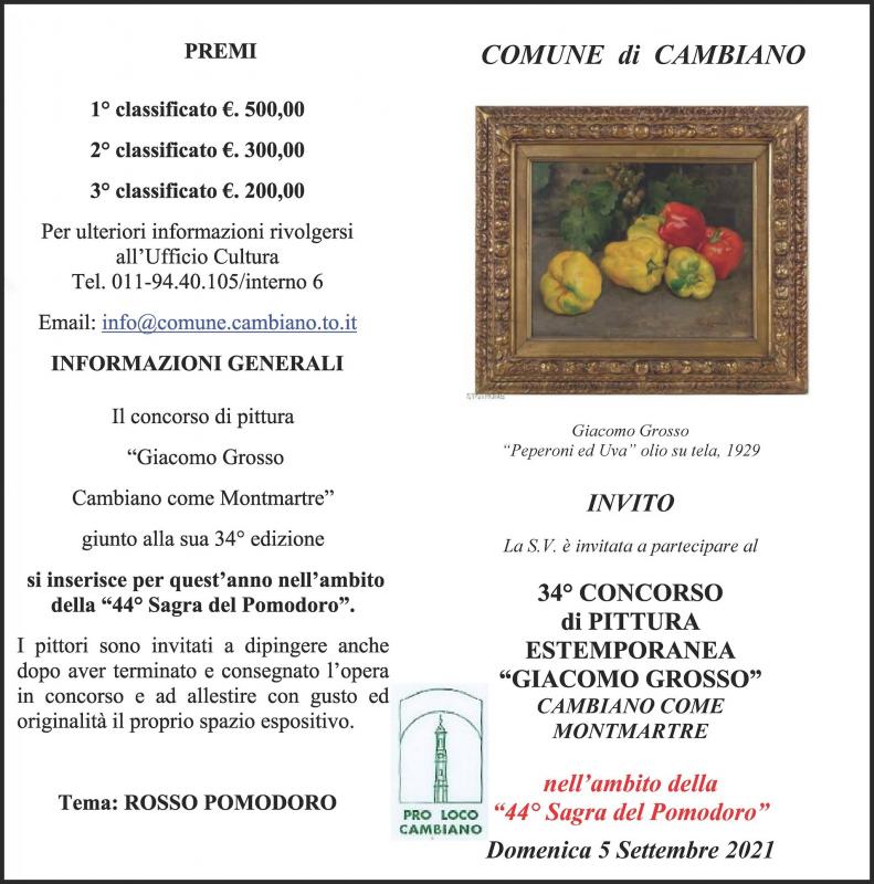 Il 34° concorso di pittura estemporanea "Giacomo Grosso - Cambiano come MontMartre" quest'anno si inserisce nella 44a Sagra del Pomodoro Costoluto
