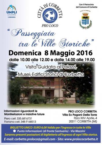 Domenica 8 maggio 2016 Passeggiata fra le Ville Storiche: Visita guidata ai Palazzi, Musei, Edifici storici di Corbetta dalle ore 10 alle 12 e dalle 14 alle 19
