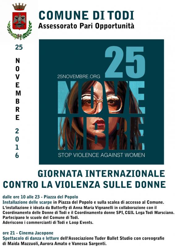 “Anche quest’anno – commenta l’Assessora alle Pari Opportunità Catia Massetti – la Città di Todi ospiterà varie iniziative per dare il suo contributo alla lotta contro la violenza di genere e per sensibilizzare ed informare i cittadini sui servizi della rete antiviolenza umbra. A Todi da marzo 2015 è in funzione uno dei punti di ascolto della rete (075.8956731): due operatrici dei servizi, specificamente formate, attivano il contatto con il Telefono Donna del Centro per le Pari Opportunità della Regione Umbria per avviare la fase di sostegno psicologico e legale per uscire dalla spirale della violenza”.