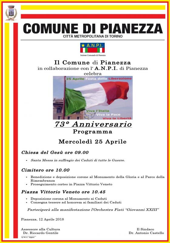 73° Anniversario della Liberazione, celebrazioni per il 25 Aprile a Pianezza: