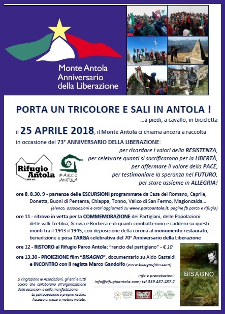 il 25 APRILE 2018, il Monte Antola ci chiama ancora a raccolta in occasione del 73° ANNIVERSARIO DELLA LIBERAZIONE: