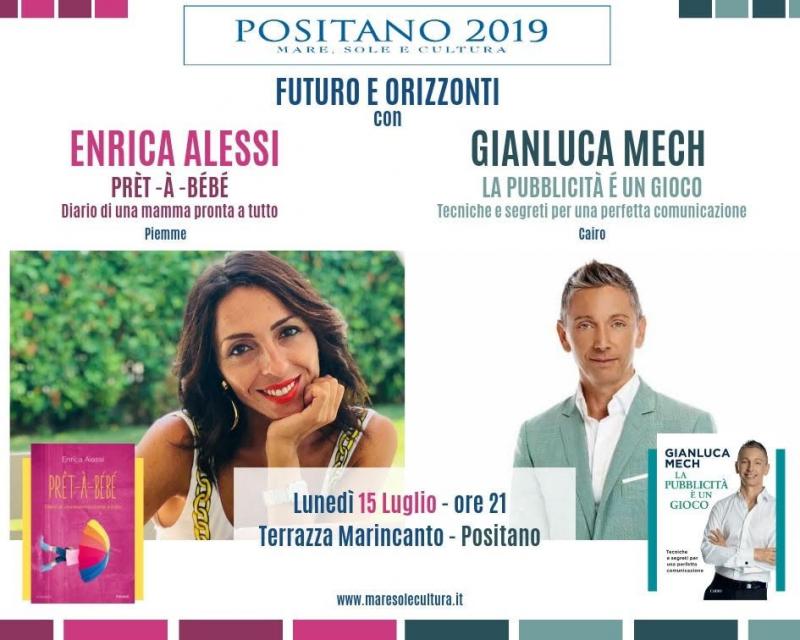 La rassegna letteraria Positano 2019 Mare, Sole e Cultura quest’anno ispirata al tema ’“Orizzonti. Racconti senza confini, chiude la XXVII edizione con una serata dedicata al tema “Futuro e Orizzonti”. Lunedì 15 Luglio (ore 21.00 - Terrazza Marincanto) Enrica Alessi, autrice di PRÊT-À- BÉBÉ (Piemme) e Gianluca Mech, inventore del metodo Tisanoreica e autore del volume “LA PUBBLICITÀ È UN GIOCO” (Cairo), si interrogheranno su come affrontare i cambiamenti della propria vita restando se stessi.