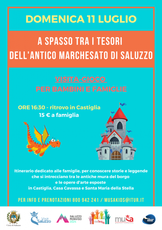 In occasione della mostra “I tesori del Marchesato di Saluzzo”, organizzata dalla Fondazione Artea, MuSa Kids propone diversi appuntamenti per bambini e famiglie alla scoperta dell’antica capitale immersa tra le colline del Parco Naturale del Monviso.