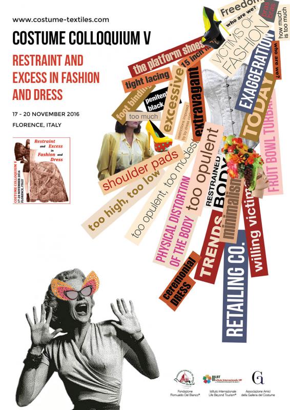 Costume Colloquium I, nel 2008, fu un tributo a Janet Arnold, famosa storica dell’abbigliamento, mentre nel 2010 il tema fu l’abbigliamento per la danza. L’edizione 2012, Past Dress - Future Fashion, ruotava attorno a una più ampia analisi degli stili storici e delle loro influenze sulle tendenze attuali e future della moda. Costume Colloquium IV, Colors in Fashion, si è concentrato sul colore e il suo significato nell’abbigliamento. Nella quinta edizione s’indagherà sull’esistenza e sulle motivazioni delle restrizioni sugli abiti imposte in campo militare, legale, religioso, nazionale e cerimoniale. Uno sguardo sarà rivolto anche alla stravaganza ed eccesso del linguaggio usato nella vendita, nella comunicazione giornalistica, nella promozione ed esposizione della moda. Eppure una scuola di pensiero sulla limitazione è ugualmente diffusa. Verrà dato spazio alle costrizioni della moda che portano a distorsioni fisiche del corpo e, pertanto, capaci d’influenzare la salute con indumenti che limitano la libertà di movimento. Costume Colloquium V si concentrerà anche sui rapporti tra libertà e confinamento, esposizione e occultamento, analizzandone i vari stili, attraverso per esempio la lunghezza degli orli, le scollature, gli ornamenti e altro.