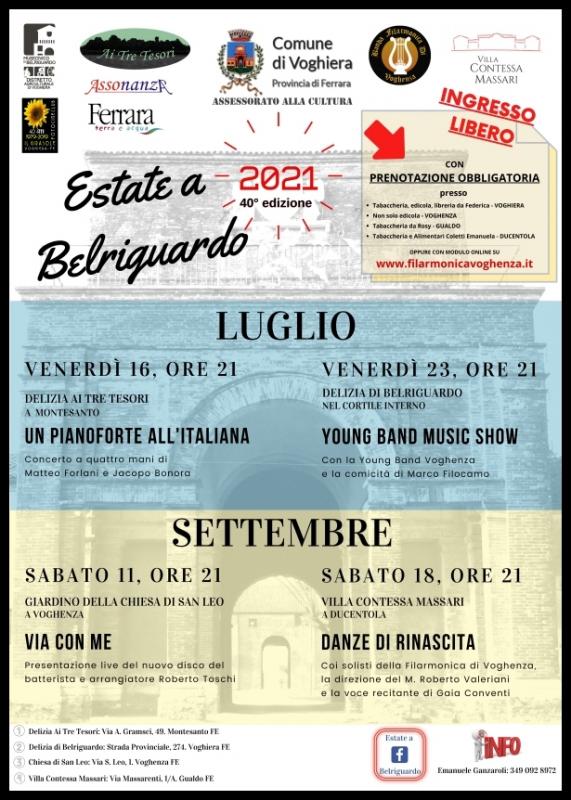 Il Comune di Voghiera, in collaborazione con la Società Filarmonica di Voghenza, presenta la 40° edizione della rassegna culturale "Estate a Belriguardo 2021".