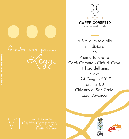 VII Edizione del Premio Letterario "Caffè Corretto Città di Cave" che si svolgerà sabato 24 giugno alle ore 18,00 nel chiostro della Chiesa di San Carlo, Piazza Marconi 1, Cave (Rm).