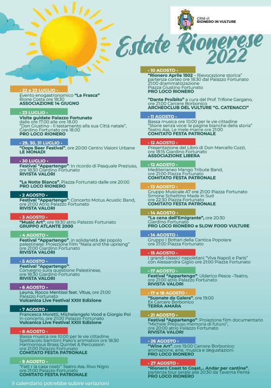Diniego di responsabilià: le notizie riportate in questa pagina sono state fornite da Enti Pubblici e Privati e, organizzazione eventi e sagre, fiere. Suggeriamo di verificare date, orari e programmi che potrebbero variare, contattando le organizzazioni o visitando il sito ufficiale dell'evento.