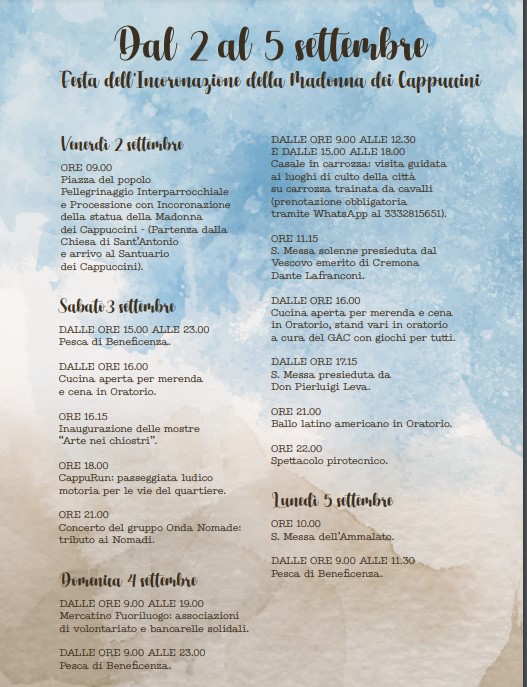 Festa dell’Incoronazione della Madonna dei Cappuccini a Casalpusterlengo 2-5 settembre 2022